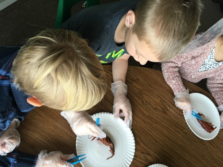 Today was school. We got to look at and learn about crayfish.